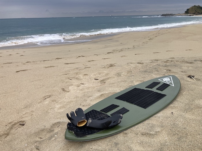志賀島の干潮にスキムしましたが波の掘れ具合が難しかったです。